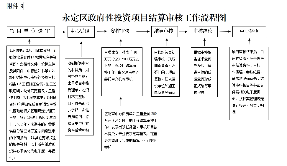 附件9:永定区政府性投资项目结算审核工作流程图…………42